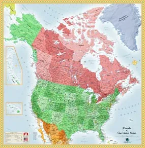 Add this USA and Canada wall map to your own map collection, or give it as a gift this holiday season.