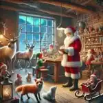 Once upon a frosty evening at the North Pole, Santa Claus stood by his grand fireplace, gazing over the magical workshop filled with bustling elves, endless shelves of toys, and reams of shimmering wrapping paper. Every corner of the room seemed to twinkle with holiday cheer.