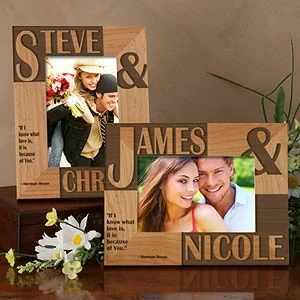 This uniquely designed engraved picture frame allows you to add two names along with a short message. You can choose one of five profound love verses or write your own personalized message of love and affection.