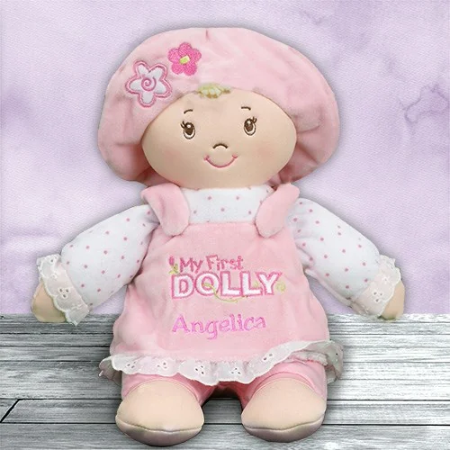 $27.98ShareTweetShare1Pin9Share313 SharesSweet little babies deserve gifts just as sweet as they are, and this personalized “My First Dolly” is just right! She is soft and huggable, with a completely stuffed head, body, arms and legs – meaning no hard parts to interrupt snuggling! She comes in your choice of either blonde or brunette hair peeking out from her little pink flowered hat. She is...
