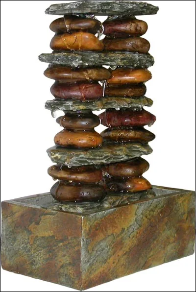 Each fountain has its own one-of-a-kind style and charisma. Like the entire class of fountains, the Alpine Slate Stone Tower Tabletop fountain produces gentle water sounds to maximize that feeling of peacefulness.