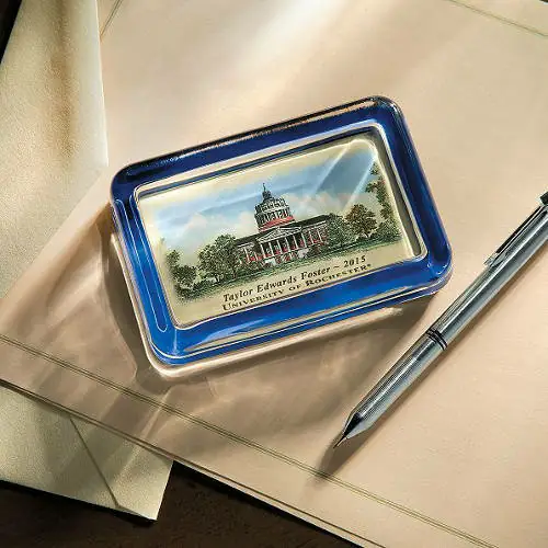 The college years can be some of the most memorable years a person can have in his or her lifetime. Help the graduates in your life commemorate this valuable time with our college paperweight. The smartest and most thoughtful gift idea around, this unique keepsake is as distinct as it is useful. Your special recipient can use it to hold papers or bills or just proudly display it on their desk. And even better—it’s personalized with an illustration of the graduate’s school, along with their name and year of graduation. Each time they look at it, they’ll be reminded of both the challenges and joys they experienced during their college years.