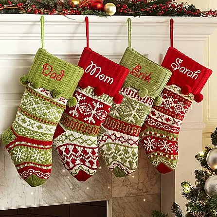 These old fashioned sweater style stockings are certain to draw out a little bit of Christmas spirit in everyone this holiday season when you hang them from your mantle. Created from 100% high quality polyester, these unique stockings are carefully knitted with your choice of an argyle design or a snowflake design, and are certain to become a lasting addition to your holiday traditions. Each stocking includes a wide cuff that is decorated with adorable snowball fringe and can be personalized with any name, nickname or sentiment you choose (up to 12 characters). Choose from four design/ color combinations including green and white snowflake, green and white argyle, red and white snowflake or red and white argyle. Be sure to order extras for when new family members arrive!