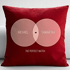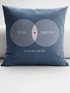 $46ShareTweetSharePin2Share2 SharesThis luxurious personalized Couple’s Throw Pillow Cover is just what you need to demonstrate your indisputable connection with that special someone this holiday season. This Venn diagram inspired throw pillow cover can be personalized with the names of both you and your sweetheart, and a date or sentiment of your choice that includes up to 25 characters, making...