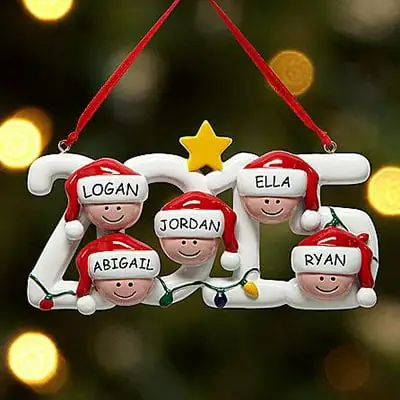 A wonderful Christmas gift idea for friends, family members or coworkers, this customized 2025 Family Holiday Ornament will make a wonderful addition to your own holiday collection as well. This fun Christmas ornament is created from high quality resin, so you can rest assured that it will be a favorite piece that is treasured for years to come. With space for up to ten holiday people, you can include every member of your family on the 2025 Family Holiday Ornament. Each holiday person is customized with any name or nickname that includes up to ten characters each.