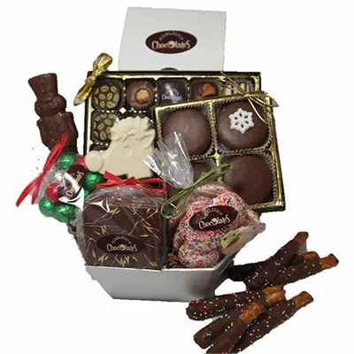 $60ShareTweetSharePin2Share2 SharesThis gourmet gift basket is overflowing with a wide variety of our magnificent custom milk chocolates and decadent dark vegan chocolates making it the perfect gift basket for chocolate lovers of all ages this holiday season. A terrific holiday goodie bag for large groups, couples or sensational singles this Christmas, your loved ones won’t believe their eyes when...