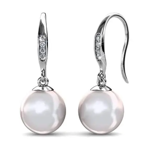 Shop NowBetty 18K White Gold Plated Round Freshwater Pearl Drop Earrnings