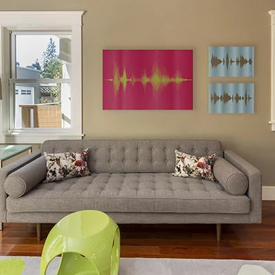 Create an amazing personalized Christmas gift for just about anyone on your shopping list this holiday season when you record interesting sound and transform it into an imaginative work of art. The perfect one of a kind gift for that person who has everything, this magnificent work of art is customized with your choice of color palettes, frames, styles and sizes to create a magical piece that is certain to enhance the beauty and character of any home. This Voice Art canvas is an interesting accent piece that goes well above the mantle, incorporated with less interesting wall décor, or behind the sofa. Voice Art Gallery uses innovative technology to help you communicate your feelings to loved ones like never before. The technique is so simple that even people who are less artistic can create memorable masterpieces that are certain to be cherished for generations to come.